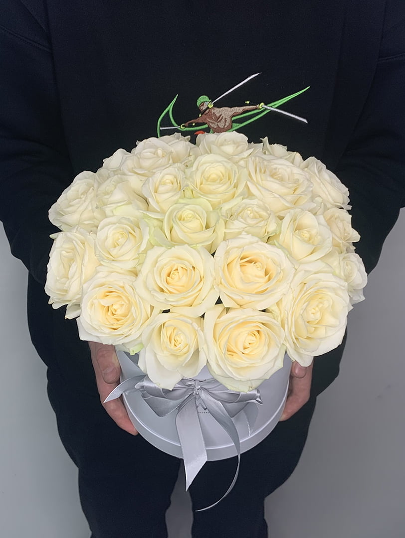 25 белых роз в шляпной коробке