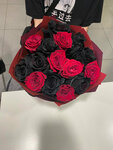 Красные и Черные розы микс в шляпной коробке в виде сердца